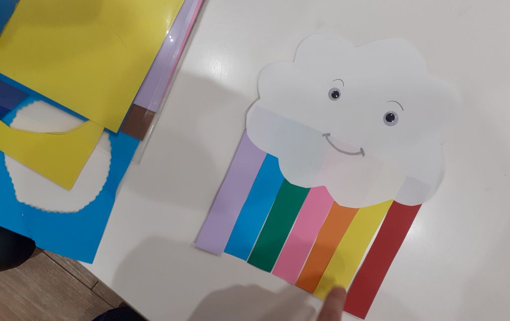 We put googly eyes on the clouds. I think everyone's rainbows were very cute and cool!