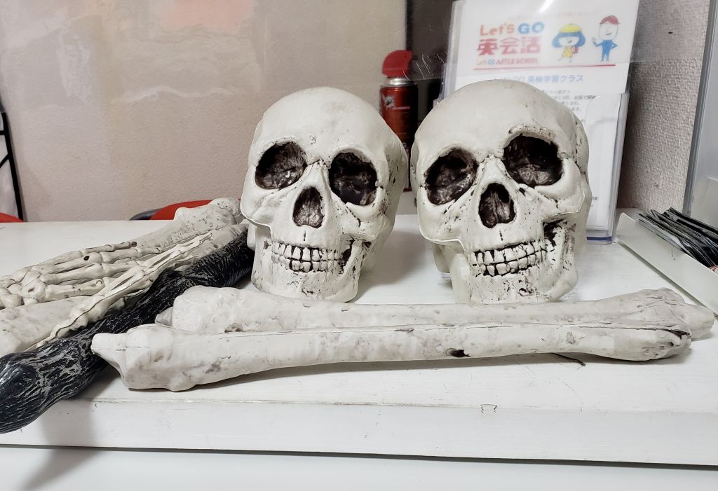 Things like pumpkin banners, spooky spiders, and piles of bones were added to the school.