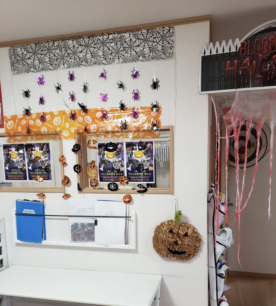 先週のLet's Go Kidsは、教室やホールなどあちこちに飾り付けをして、Halloweenの雰囲気でいっぱいになりました。