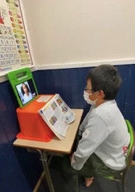その内容は、まず、あるトピックについて短い授業を受け、その後、オンライン上の海外の先生にマンツーマンで報告するというレッスン法です。
