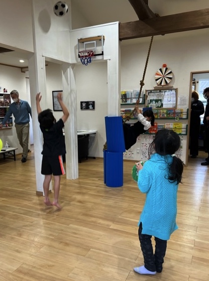 バスケットゴールにシュートをしたり、クライミングロープに挑戦