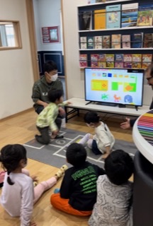 キンダークラスも仲間が増えました。職場体験に来てくれた高校生のお兄さんとすっかり仲良くなりましたね。