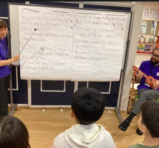This month we learned a new song by an American singer, B. J. Thomas. It's called "Rain Drops are Falling on My Head." Do you know it? I knew only a part of it before singing it at Let's Go.
