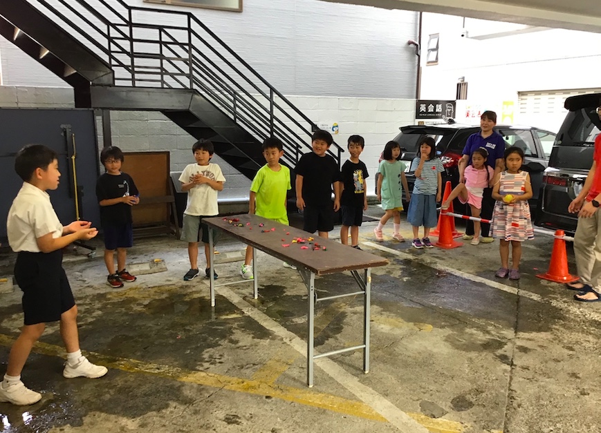 みんな怪我をしない程度で、沢山の水風船を友達同士で投げ合いっ こ!