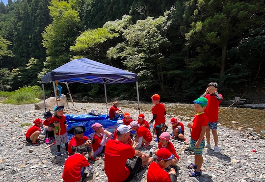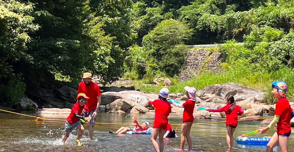 まずはウォーターガンでクールダウン。それから約1時間半、ティーチャースタッフに見守られながら、子供たちのキャッキャという歓声が山にこだまします・・・。