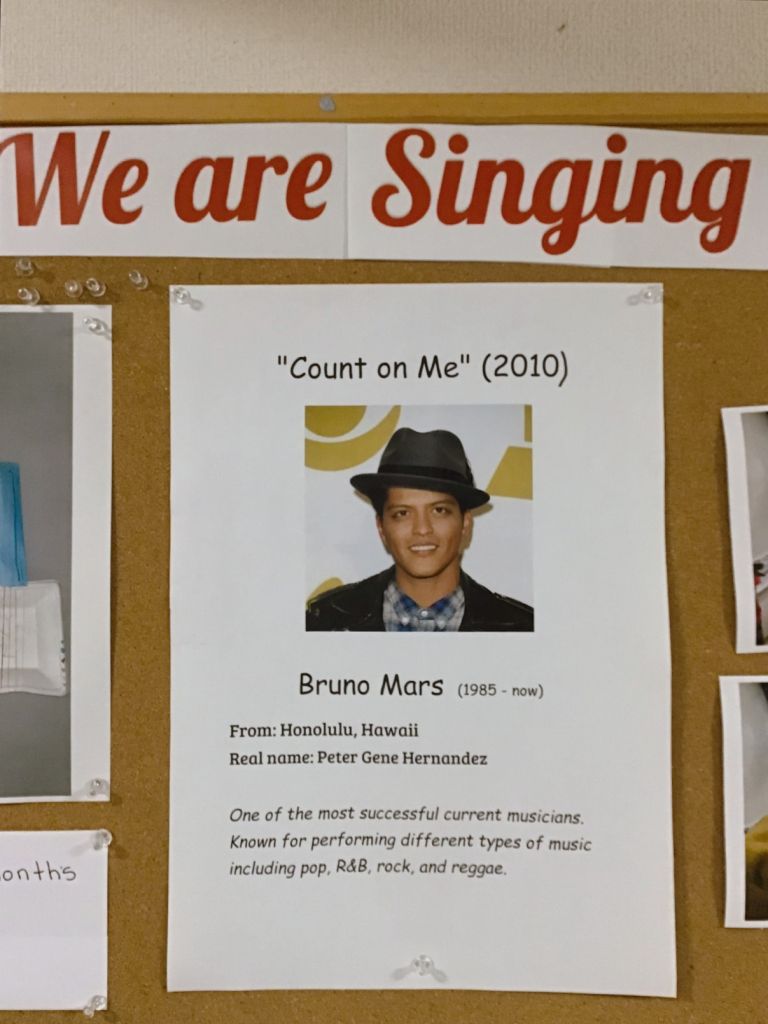 アメリカで人気を誇る歌手 Bruno Marsの「Count on Me」を歌っています。
