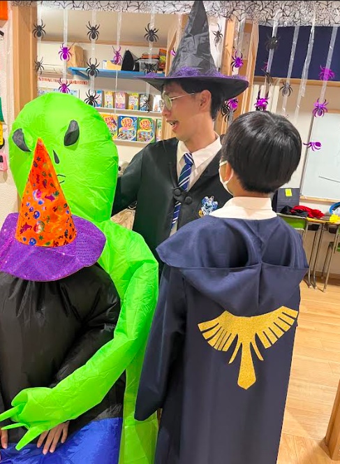 スクールのディスプレイもBGMもHalloween 仕様、コスチュームに身を包むと、子供だけでなくティーチャーもスタッフも何だかドキドキワクワク・・・。いつも通りとはいきませんね。