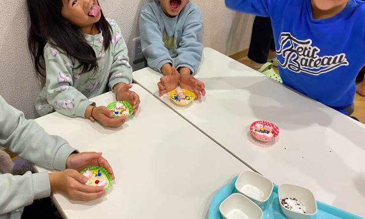 チョコレートやマシュマロなどカラフルなトッピングで、それぞれデコレーションを楽しみました。