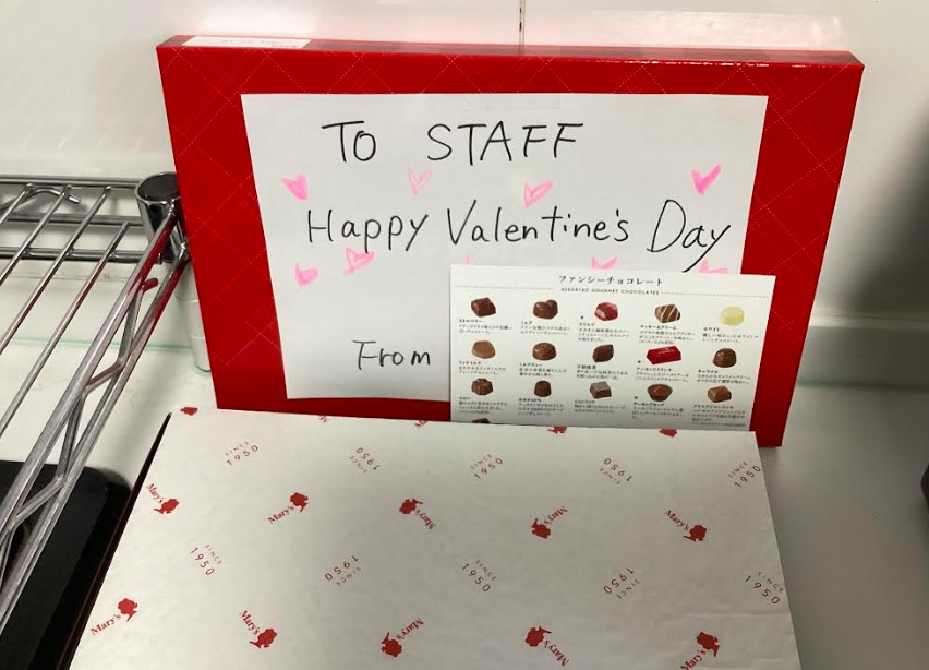 It’s Valentines. Love is in the air. In Malaysia, boys usually hand out chocolates to girls but In Japan, it’s the other way round. Here’s a picture of R Chan giving a chocolate to our teacher Barbara.