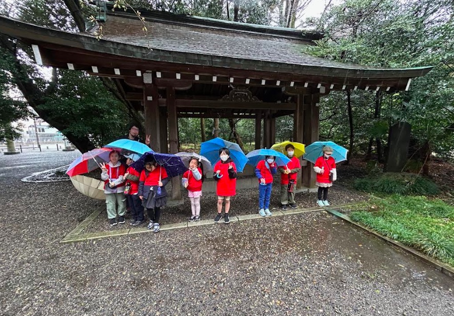 空はあいにくの雨ですが、みんなでCherry Blossom Hunting に出かけました。