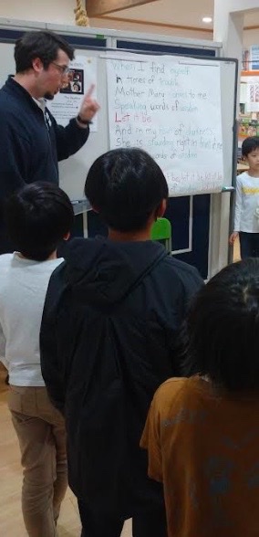 4月は歌の月で、あの有名なビートルズの曲、"Let It Be"を習いました。