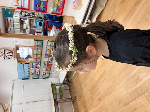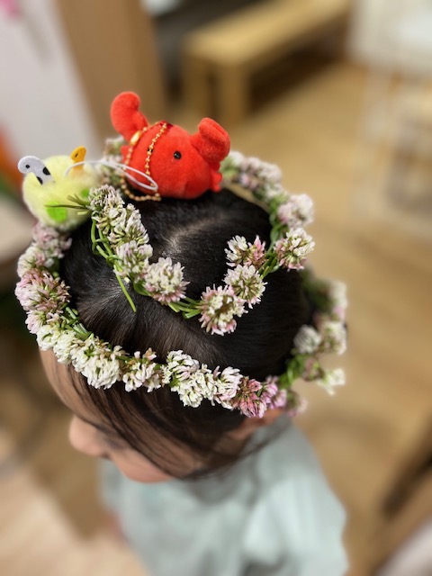 腰を下ろして冠作りに集中したりと、遊び方もさまざま。