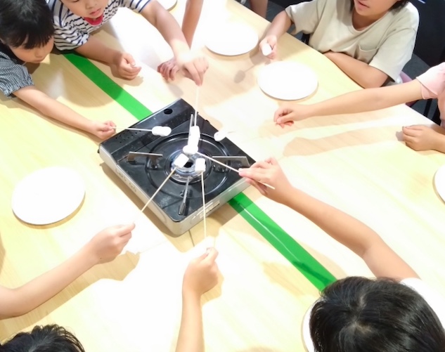 今週は通常のレッスンとは少し趣向を変えて、 先生達と一緒にベイクドマシュマロを楽しみました。