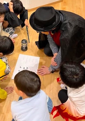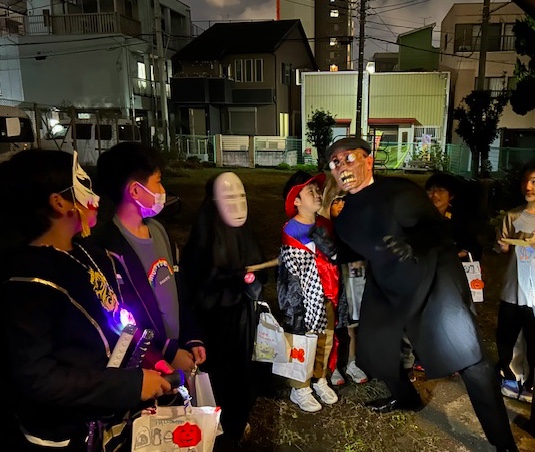 私たちのイベント<Halloween Walk >は、通常の<Halloween Party>とは少し異なります。仮装するだけではなく、子供たちは屋外に繰り出し、待ち構えるモンスターにインタビューを行うのです。