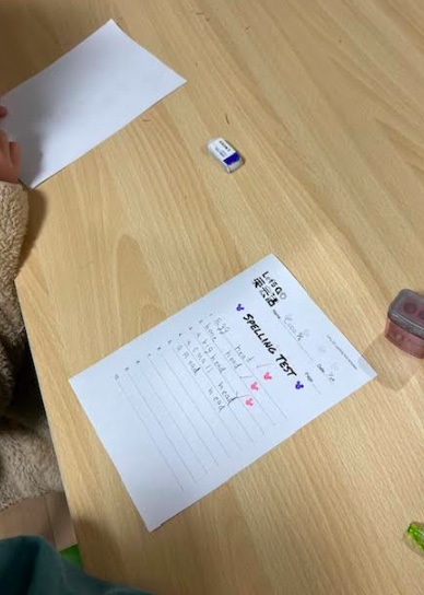 スペリングテスト月間だった1月は、毎日レッスン後にテストを行