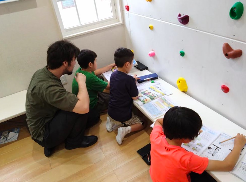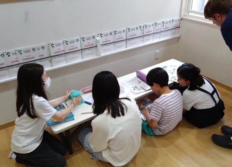 前半に会話レッスンを受けた子達は後半でワークブックやプリント等。