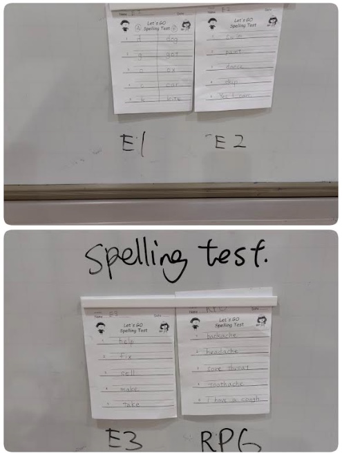 毎レッスンの後に行っているスペリングテスト。