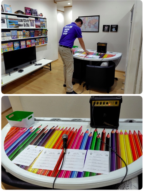 テストの時間は音声マイクが登場!スクールのどの教室にもteacherの声が響き渡ります。