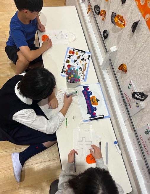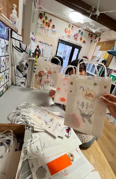 一番のお楽しみは、子どもたちが自分たちでトリック・オア・トリートのバッグを作ったことです。