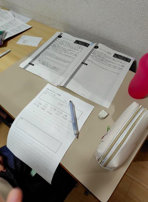 3級対策で英作文を書いています。 書き終わったらスタッフが確認します。