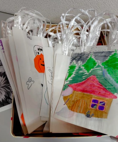 それに向けて、手作りの紙袋にそれぞれが思い思いの絵や折り紙などを 貼って素敵な袋を作りました。