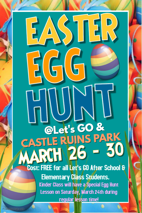 アメリカではイースターといえばエッグハントです。宇都宮の子ども英会話教室 Let's Go英会話 では今年イースターまでの1週間を"エッグハントウィーク"とし、城址公園まで子ども達は"エッグトレジャーハント(宝物探し)"に出掛けます♪
